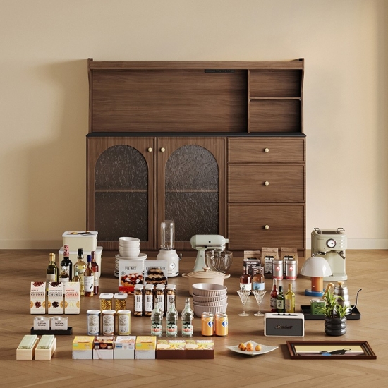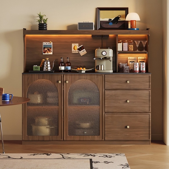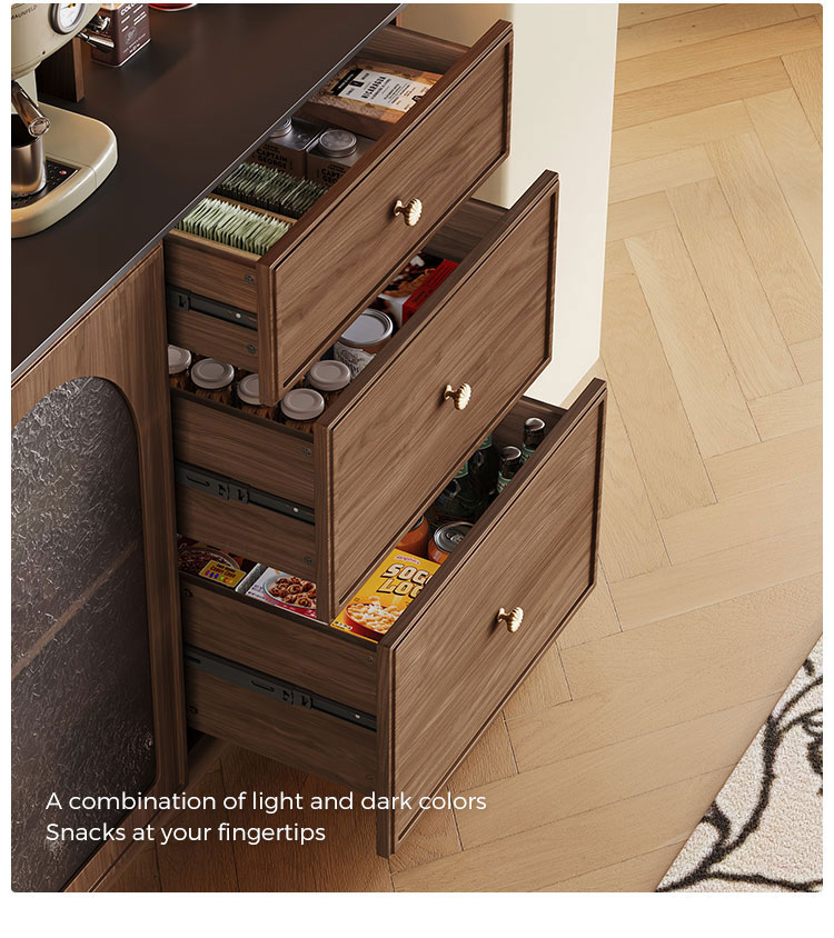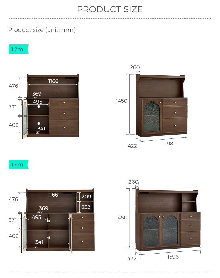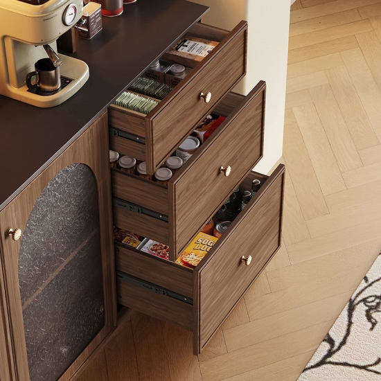 ตู้ลิ้นชักอเนกประสงค์ไม้วอลนัท ขนาด 1.6 ม. พร้อมลิ้นชักและประตูกระจก RC3T-A |