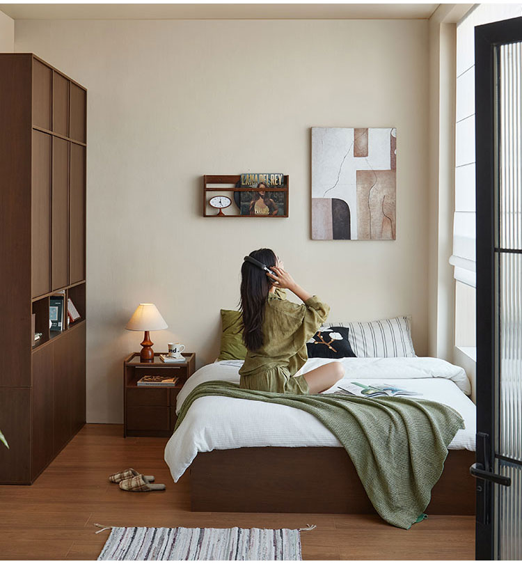 สัมผัสการผสมผสานอย่างลงตัวระหว่างประเพณีตะวันออกและฟังก์ชันการใช้งานที่ทันสมัยด้วยเตียงเก็บของสไตล์วินเทจ Tatami ของเรา ดีไซน์ไร้หัวเตียงนี้เน้นเส้นสายที่สะอาดตาและพื้นที่เปิดโล่ง สร้างบรรยากาศห้องนอนที่สงบและเรียบง่าย จุดเด่นอยู่ที่เสื่อทาทามิแท้ ซึ่งเพิ่มพื้นผิวที่เป็นธรรมชาติและความรู้สึกออร์แกนิกเหนือกาลเวลาให้กับการตกแต่งภายในของคุณ