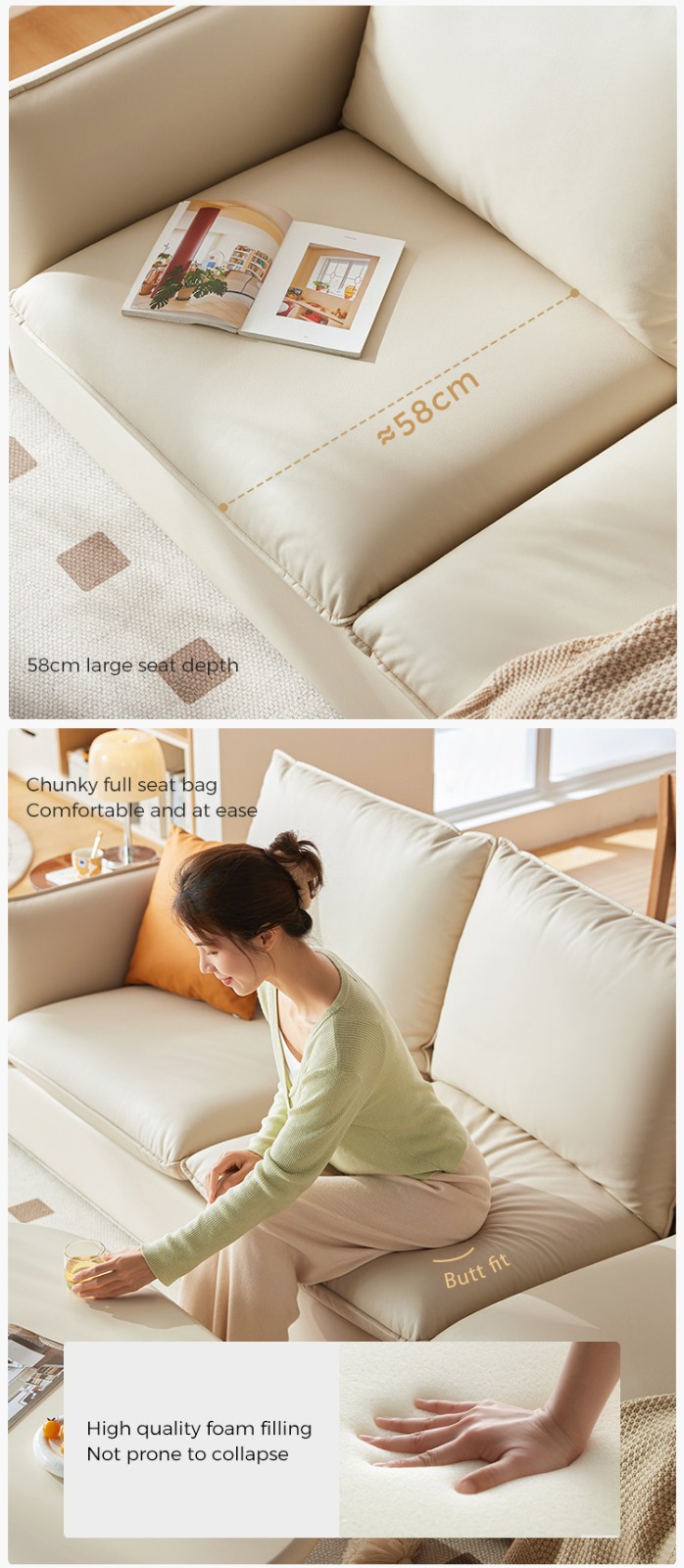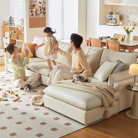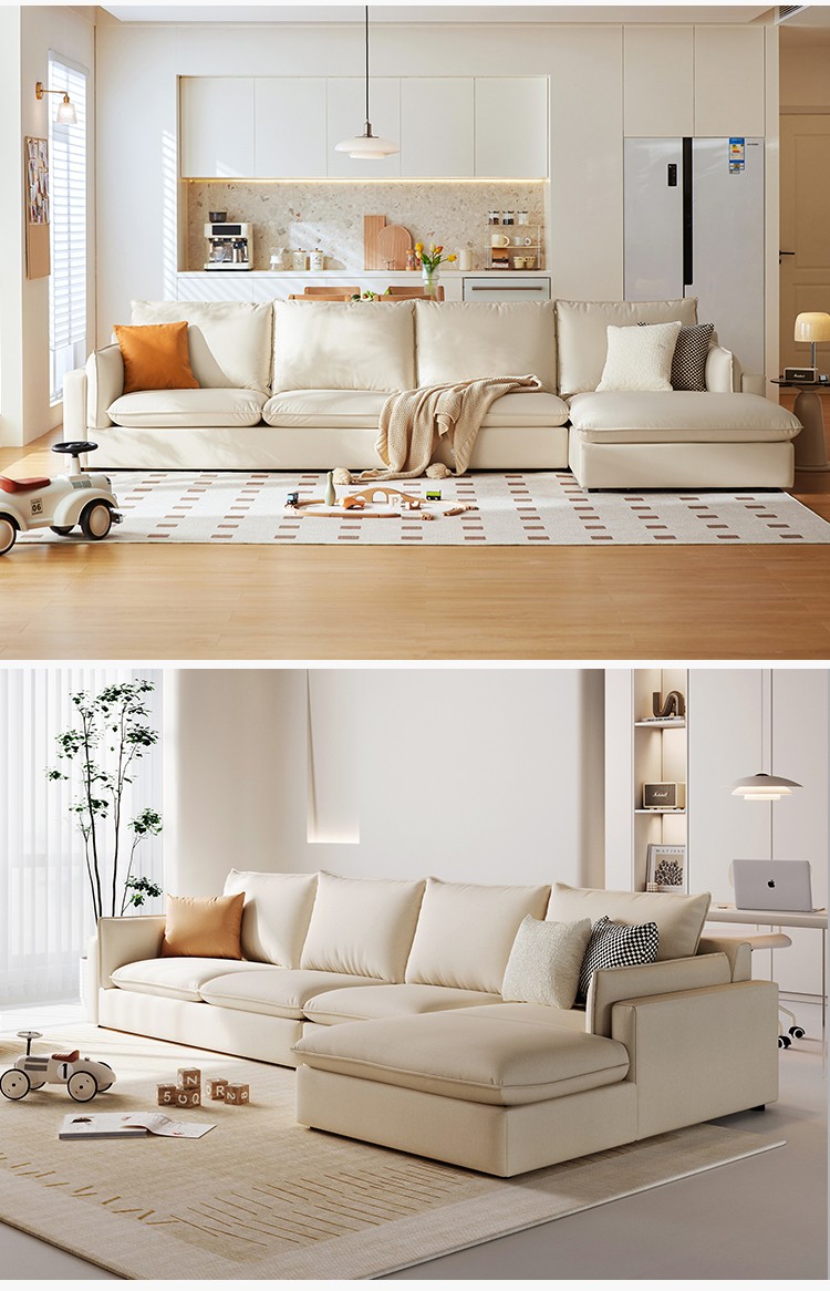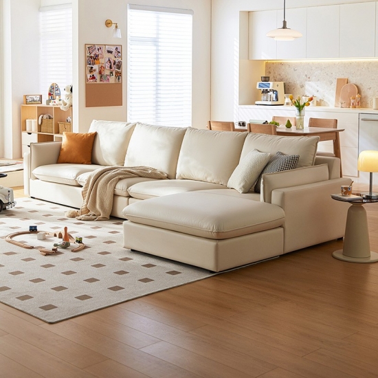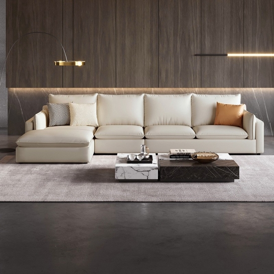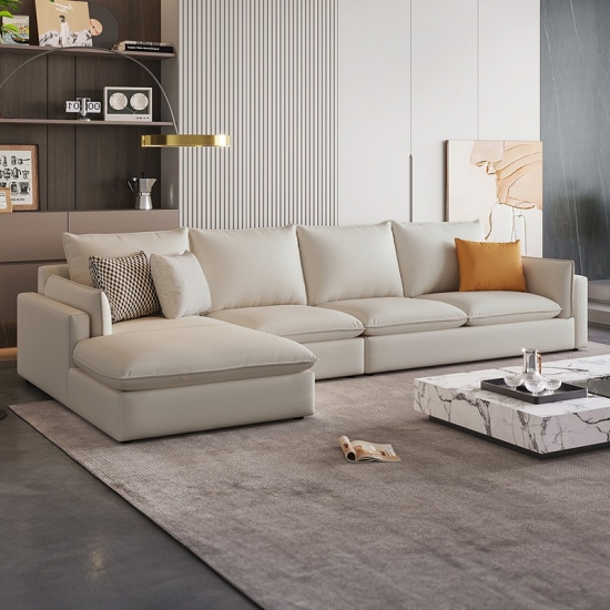7โซฟาหนัง L-Shape สไตล์นอร์ดิก สีเบจ BS290-A