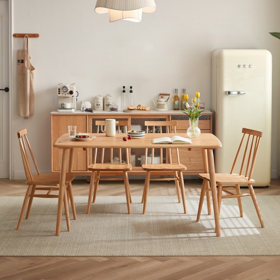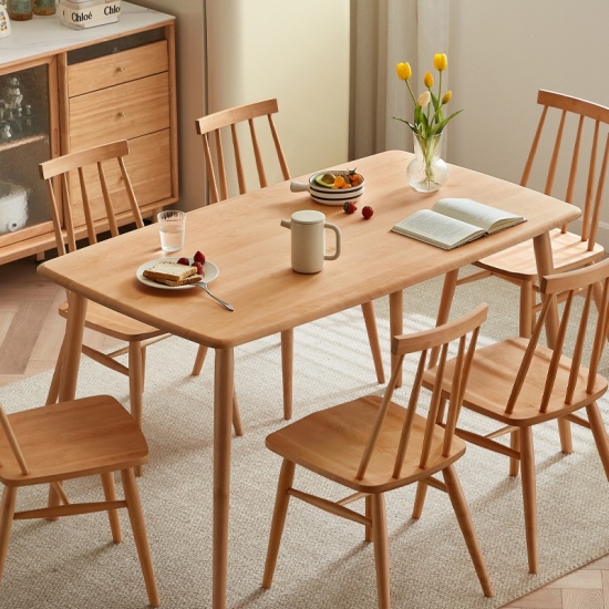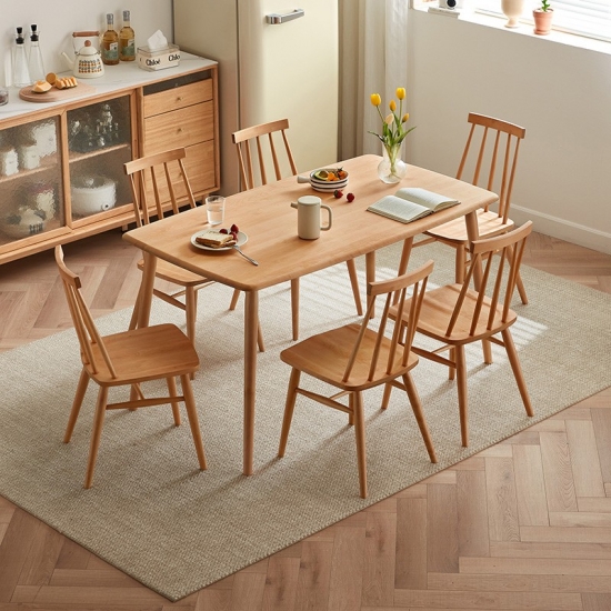 7โต๊ะอาหารไม้สี่เหลี่ยมผืนผ้าสไตล์นอร์ดิกพร้อมเก้าอี้ LS394R1-A