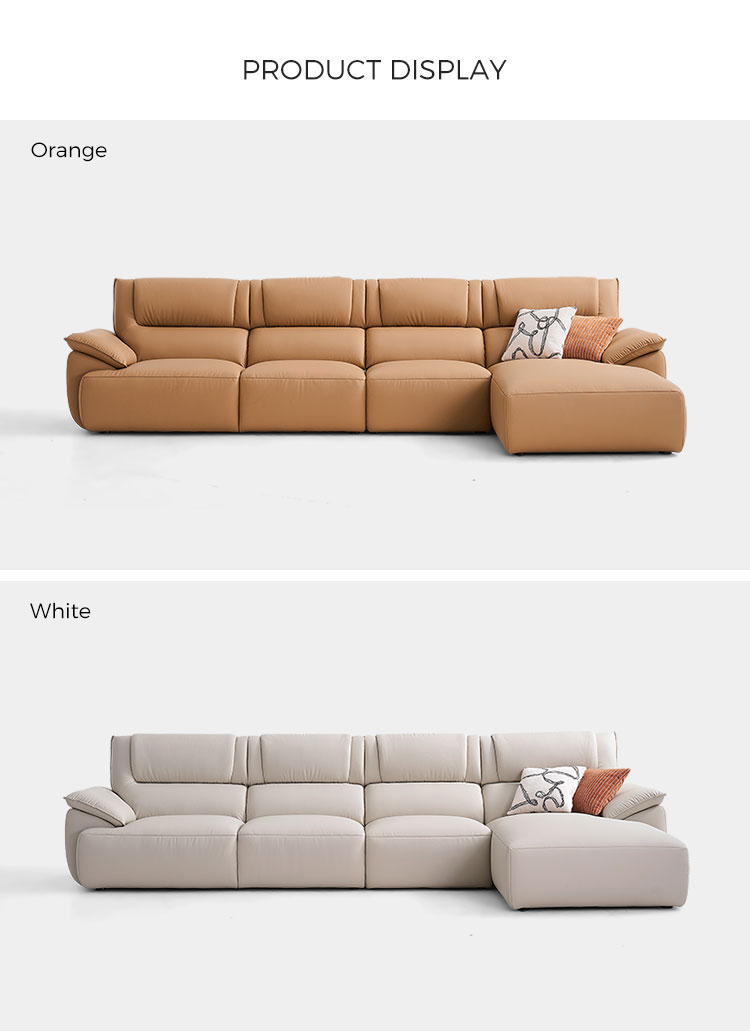เบาะสีส้มอำพันสดใส: โซฟาตัวนี้ผลิตจากหนังแท้หรือหนังชั้นบนคุณภาพพรีเมียม มีสีส้มอำพันเข้มข้นที่เพิ่มสีสันที่อบอุ่น มีชีวิตชีวา และทันสมัยให้กับห้องใดก็ได้