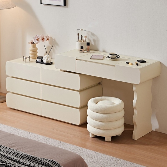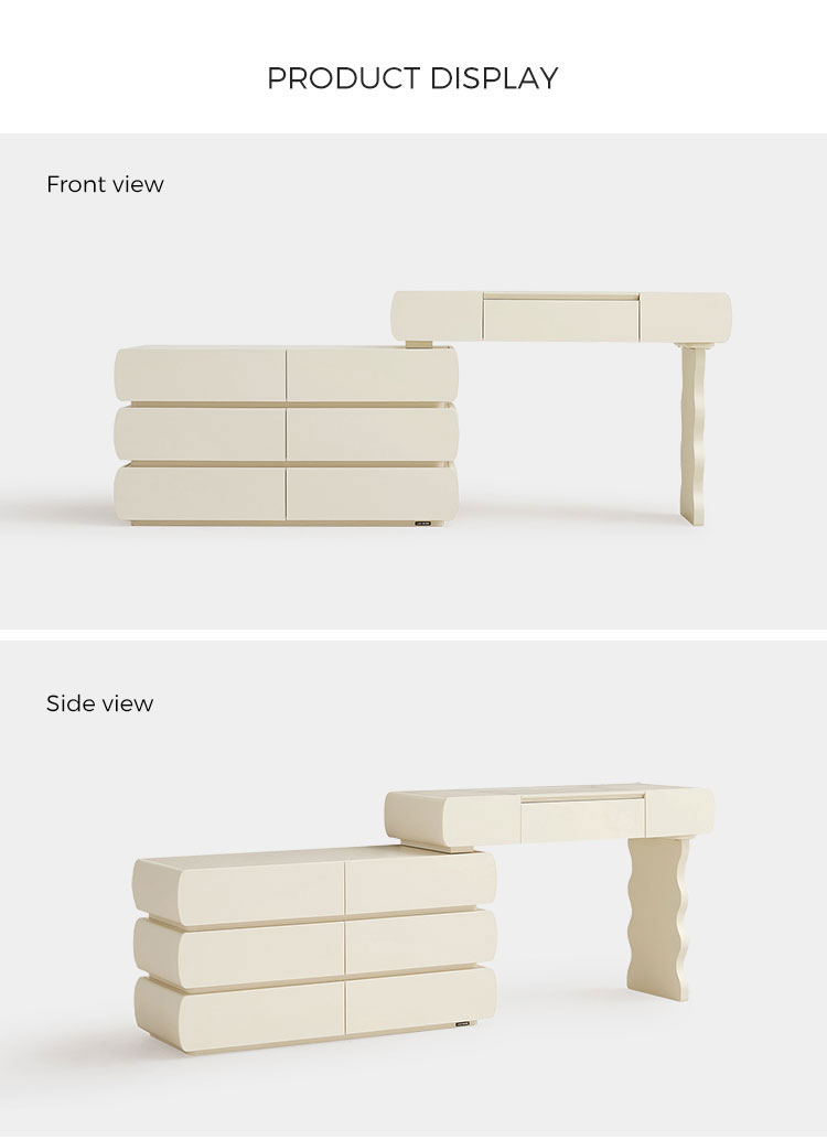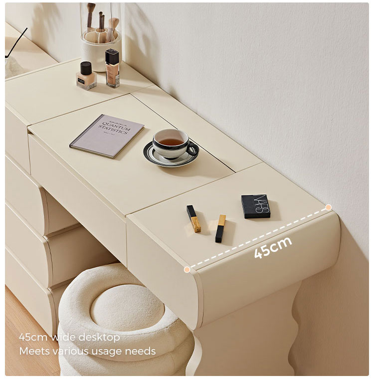 พื้นที่สำหรับแต่งหน้าโดยเฉพาะ: พื้นที่ด้านบนกว้างขวาง มอบแพลตฟอร์มที่สมบูรณ์แบบสำหรับการแต่งหน้าของคุณ จัดวางน้ำหอม ผลิตภัณฑ์ดูแลผิว หรือกล่องเครื่องประดับได้อย่างหรูหรา