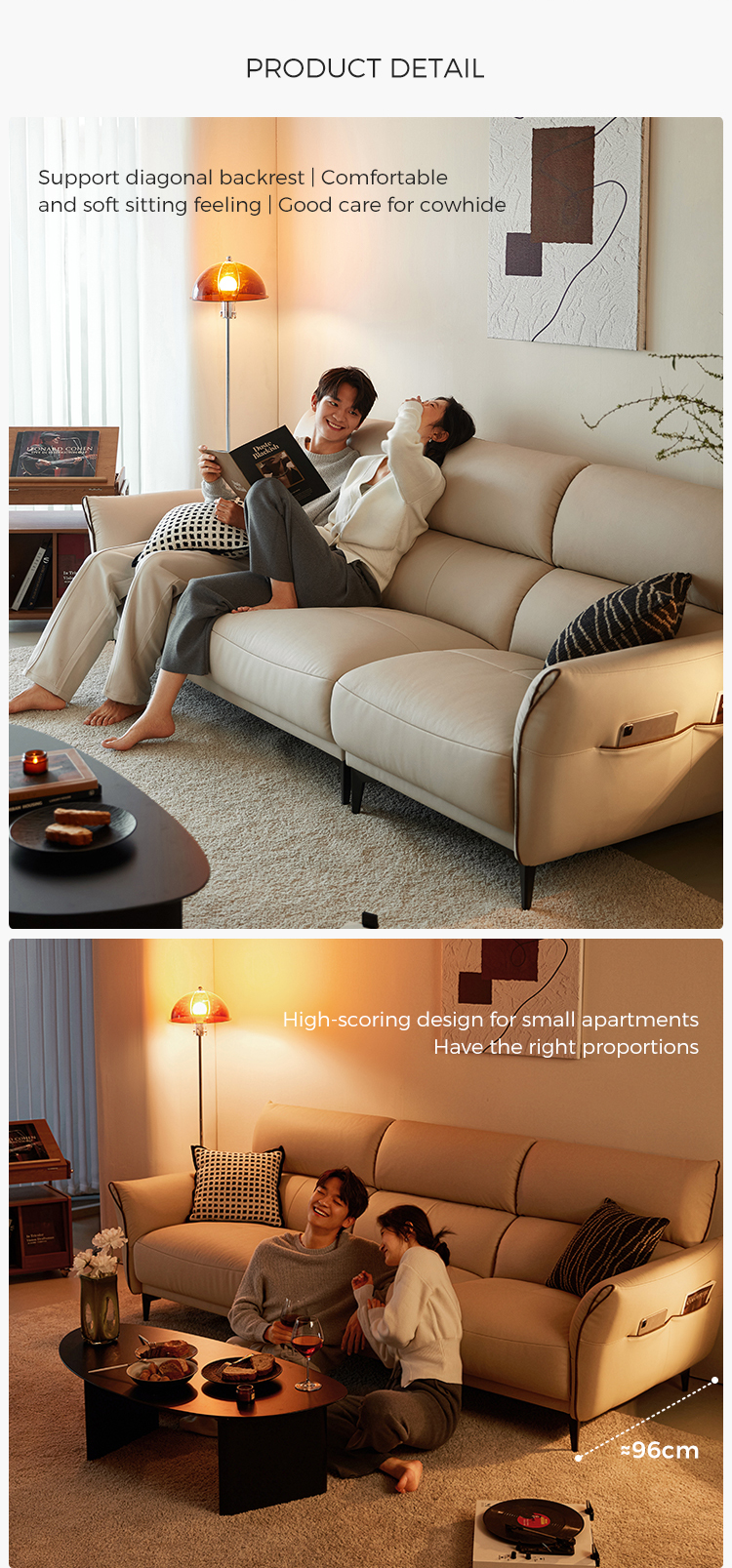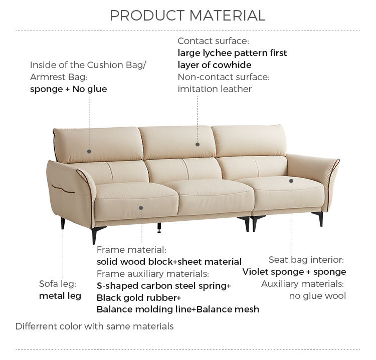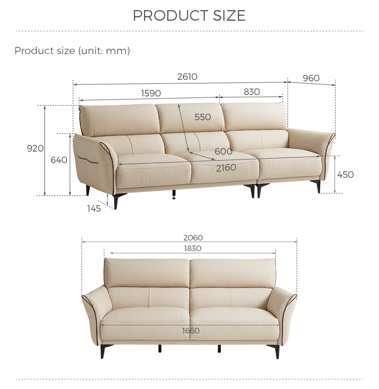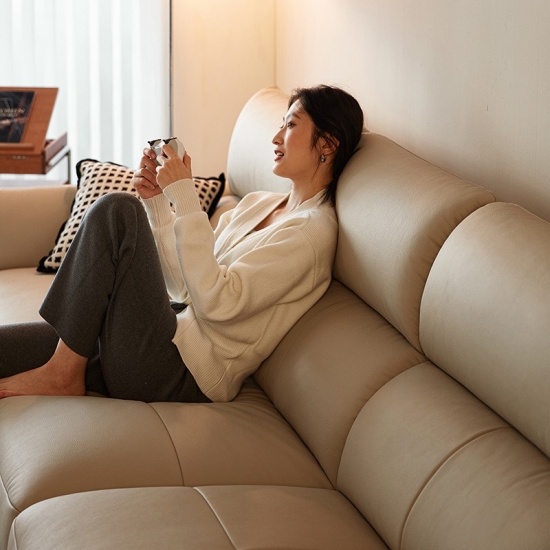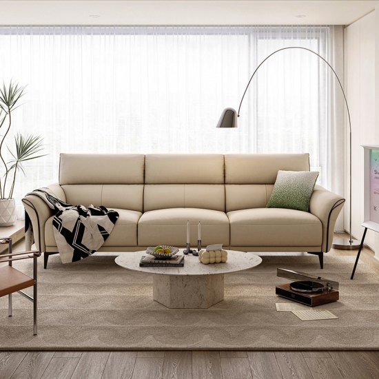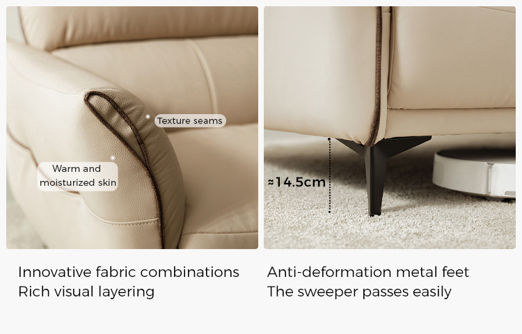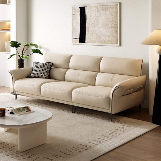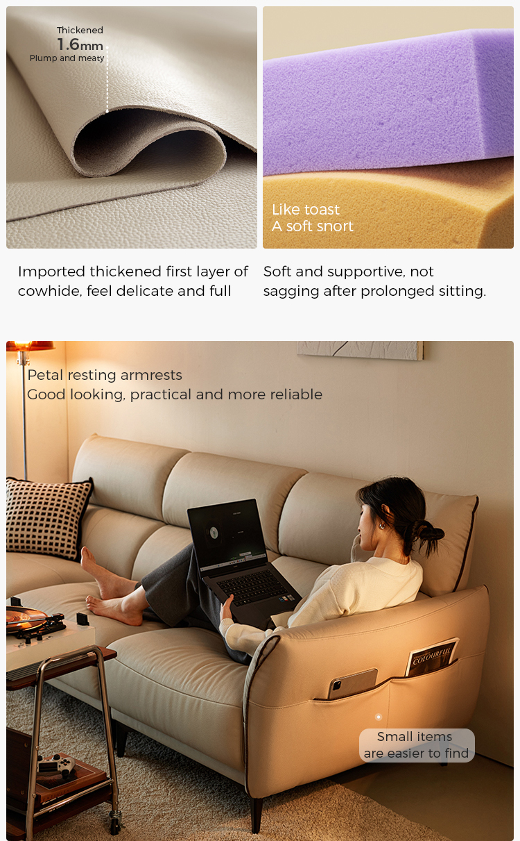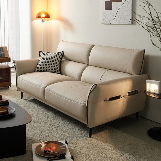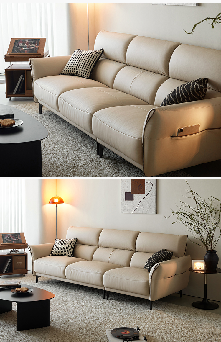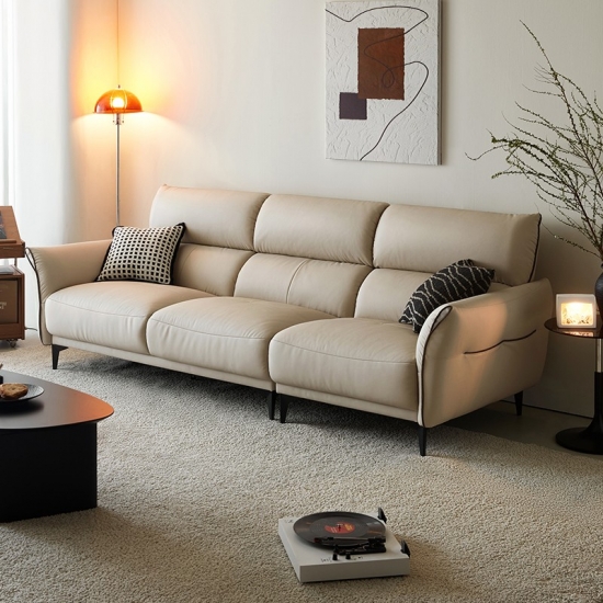 โซฟาหนังนิ่มสีทรายอ่อนตัวนี้ได้รับการออกแบบมาเพื่อให้เข้ากับสไตล์และความผ่อนคลายอย่างลงตัว เข้ากับการตกแต่งภายในแบบโมเดิร์นและคลาสสิกได้อย่างลงตัว พื้นผิวกำมะหยี่อันน่าดึงดูดใจมอบสัมผัสที่หรูหรา ในขณะที่การออกแบบตามหลักสรีรศาสตร์ช่วยให้มั่นใจได้ถึงความสบายเป็นพิเศษ
