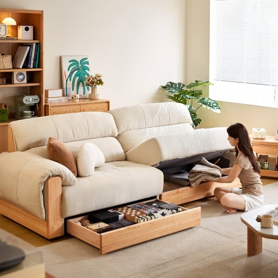 ช่องเก็บของแบบบูรณาการ: พื้นที่เก็บของที่กว้างขวางซ่อนอยู่ภายในเก้าอี้หรือฐานอย่างแนบเนียน เหมาะสำหรับเก็บผ้าห่ม หมอน หนังสือ และสิ่งของจำเป็นในการดำรงชีวิตอื่นๆ ช่วยให้คุณรักษาสภาพแวดล้อมที่ไม่มีความยุ่งวุ่นวาย