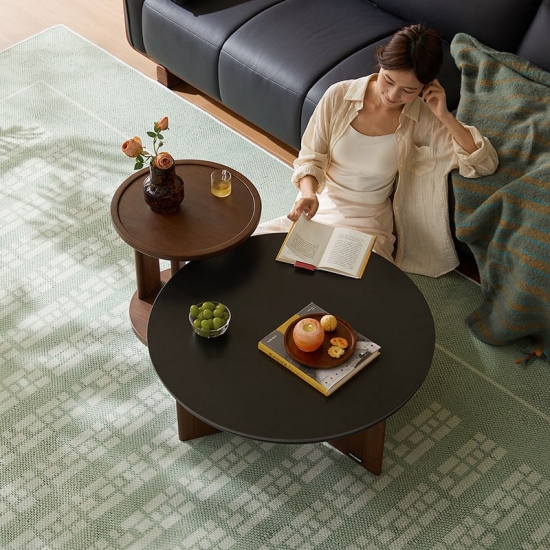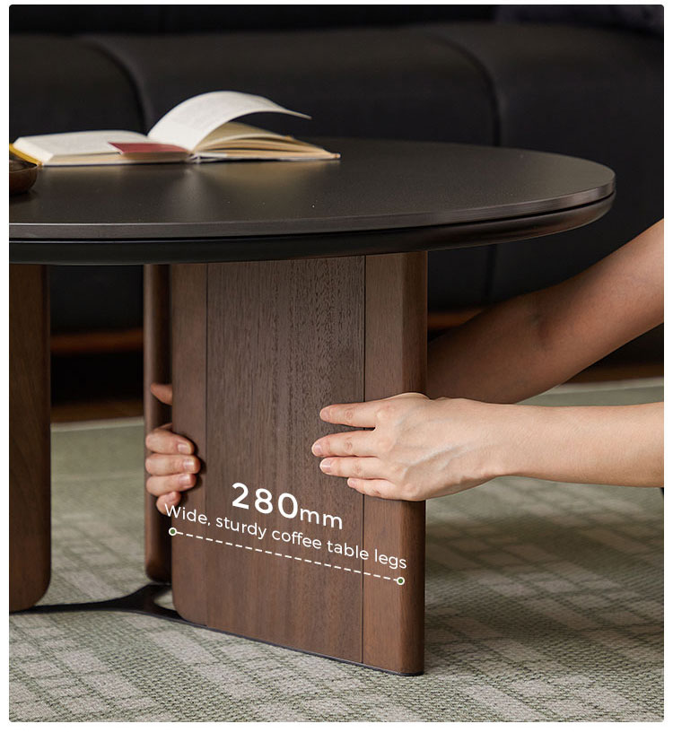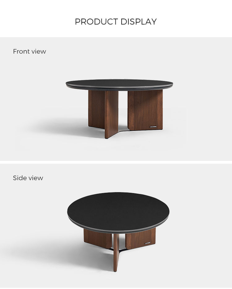 พื้นผิวโต๊ะโดดเด่นด้วยท็อปหินเผาแบบพิเศษ สร้างขึ้นด้วยกระบวนการที่อุณหภูมิสูง ทำให้เกิดลวดลายพื้นผิวที่เป็นธรรมชาติและเฉดสีเทาและถ่านที่ดูเป็นธรรมชาติ โครงสร้างรองรับเป็นการผสมผสานวัสดุที่โดดเด่น ส่วนประกอบไม้เนื้อแข็งที่เคลือบด้วยสีวอลนัทที่อบอุ่น ให้ความอบอุ่นและความแตกต่างที่เป็นธรรมชาติ นอกจากนี้ โต๊ะนี้ยังเป็นมากกว่าโต๊ะ—มันคือชิ้นงานที่ดึงดูดความสนใจ มันมอบสไตล์ที่ล้ำสมัยโดยไม่ลดทอนฟังก์ชันการใช้งานแม้แต่น้อย มีพื้นผิวที่กว้างขวางสำหรับวางเครื่องดื่ม ของตกแต่ง และสิ่งของต่างๆ