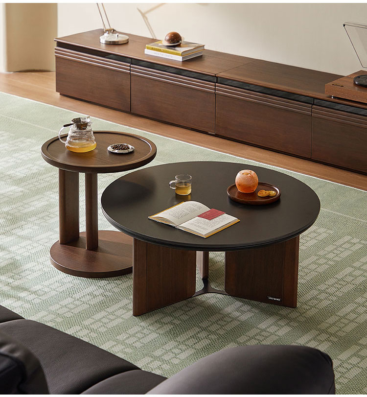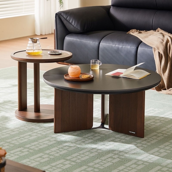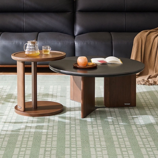 7โต๊ะกาแฟทรงกลมสีวอลนัท ท็อปหินสังเคราะห์ UY2L-A