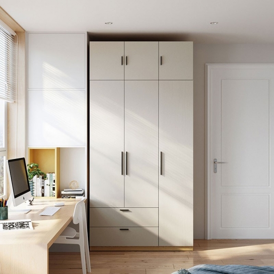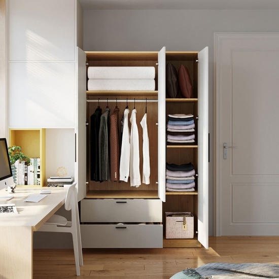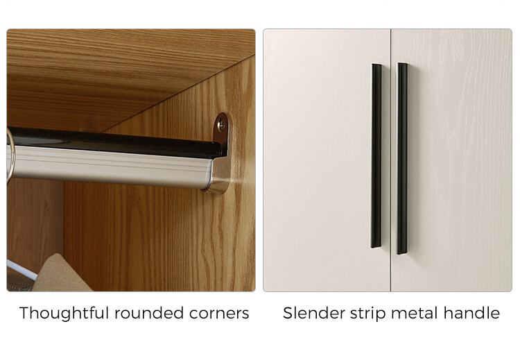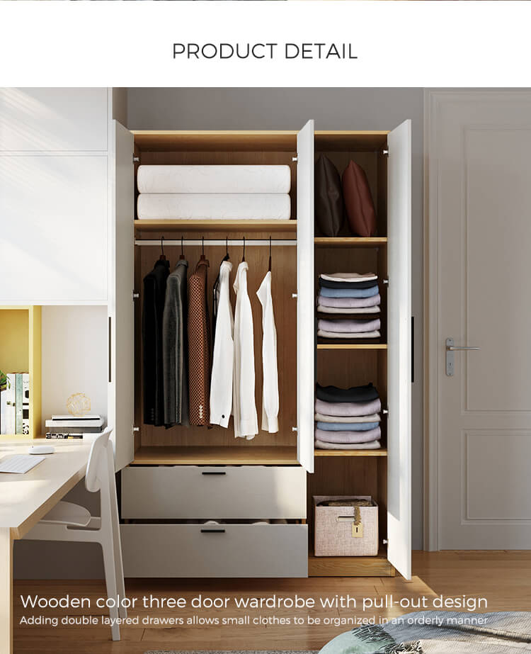 ตู้เสื้อผ้าสามประตูนี้ผสมผสานความเรียบง่ายและการใช้งานได้อย่างลงตัว มีพื้นที่เก็บของมากมายและเสริมความสวยงามให้กับห้องของคุณ พื้นผิวสีขาวสะอาดตาช่วยเสริมให้การตกแต่งดูดีขึ้น ทำให้ตู้เสื้อผ้านี้กลายเป็นส่วนเสริมที่เหนือกาลเวลาสำหรับบ้านของคุณ